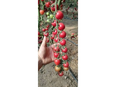 臺灣農友千禧小西紅柿苗,水果用番茄,果色桃紅,早生,高性,生育期強,耐病。果色桃紅,橢圓形,平均20克。糖度高過9.6-10%,風味優,不易裂果。每穗可結14-31果,高產,耐枯萎病,耐貯運。