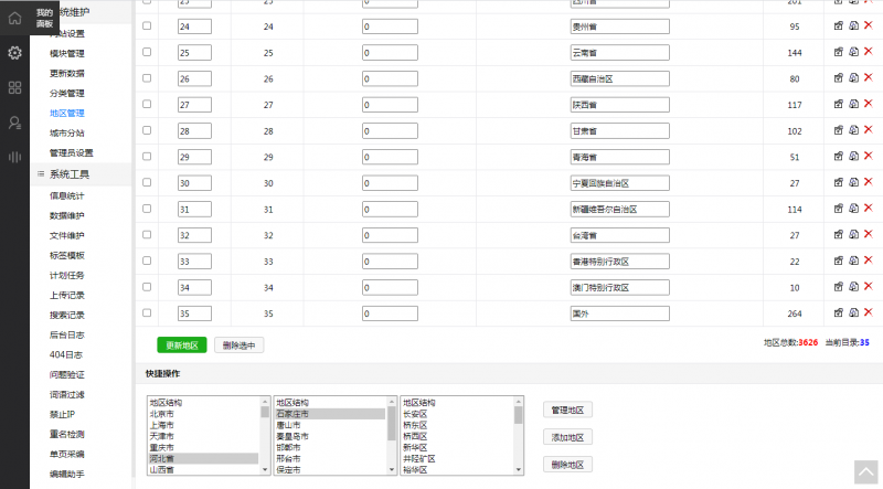 destoon全國地區數據三級分類包含縣級地區,全國一共3626個地區,見下圖: