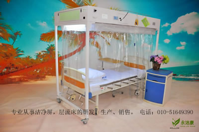 層流床是一種單向流空氣凈化消毒設(shè)備, 層流床構(gòu)造了一個(gè)有效的可移動(dòng)潔凈消毒空間,有效降低了疾病在其工作空間內(nèi)的感染機(jī)率。特別適用于醫(yī)院血液病病人、放化療病人及其他免疫力低下的患者在設(shè)備內(nèi)休息、療養(yǎng)。 層流床由溶菌酶,光觸酶空氣凈化消毒系統(tǒng)、照明滅菌系統(tǒng)、遠(yuǎn)程搖控,操作控制系統(tǒng)進(jìn)口低噪音風(fēng)動(dòng)系統(tǒng)等組成。 層流床工作原理: 其整體結(jié)構(gòu)為金屬材質(zhì)的可移動(dòng)潔凈消毒空間,有效降低了疾病在其工作空間內(nèi)的感染機(jī)率。頂部為光觸媒空氣凈化消毒系統(tǒng),四周以高透明度的進(jìn)口無(wú)味膠垂簾圍護(hù)。工作時(shí)頂部的風(fēng)機(jī)吸入環(huán)境空氣,經(jīng)光觸媒空氣凈化系統(tǒng)消毒過(guò)濾成為潔凈無(wú)菌空氣,再以層流的方式送入工作區(qū)域。同時(shí)使工作區(qū)域內(nèi)保持正壓,以阻止外部空間的塵埃粒子進(jìn)入工作區(qū)域。