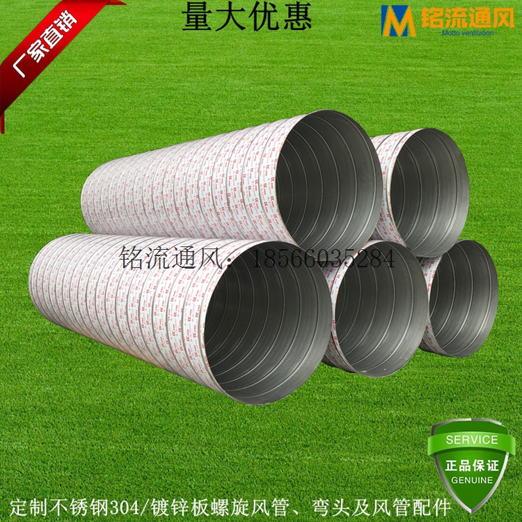 螺旋風管是用金屬帶料卷制成螺旋形咬縫的薄壁管。采用的材料一般是0.6mm-1.2mm厚的鍍白鋅板帶料,也可使用不銹鋼和鋁板帶料。螺旋風管的配件,如彎關、三通、變徑、天圓地方、風閥等按常規鈑金工藝制作。螺旋圓風管是受客戶歡迎的產品。因其無焊接、不漏氣、不漏水,多用于送風和粉料輸送,是替代傳統的白鐵管(即手工咬縫管)的理想選擇。與之相比較,機管的螺旋風管有以下優點: