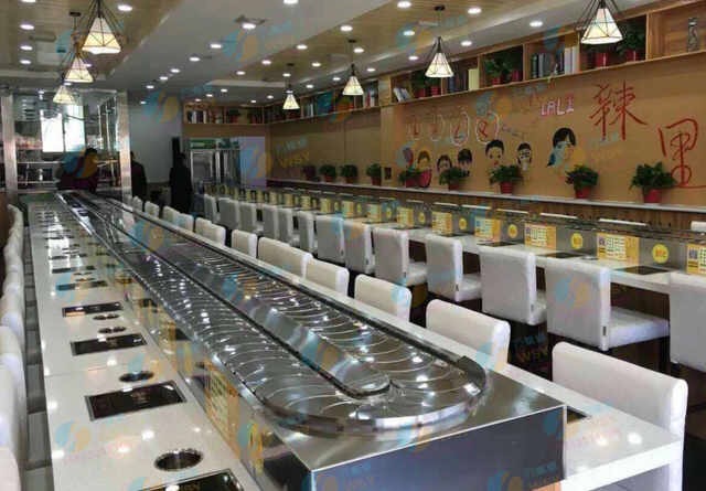 武漢回轉麻辣燙設備 旋轉小火鍋輸送帶行情預測回轉小火鍋設備:整機性能穩定、安全、無噪音、易操作、輸送鏈帶運轉平穩,機械維護可自己隨時進行,使用壽命長