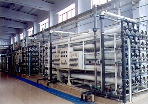 濟南科恩環保水處理設備有限公司專業生產工業反滲透設備。整個反滲透系統由原水增壓泵、多介質過濾器、阻垢劑添加、保安過濾器、高壓泵、反滲透膜、壓力容器、以及相應的儀器、儀表、閥門、機架、管道及管件等組成。反滲透膜是一種由壓力驅動的新型高分子分離膜,在壓力推動下,溶液中的水分子透過膜,而其它大分子、陰陽離子、細菌、病毒等被截留,從而達到純化水的目的。反滲透膜的孔徑小于1nm,能有效去除二價離子,對一價離子的去除率可達95-99%;對低分子量有機物的去除率可達100%;能有效去除病原微生物、各種細菌和病毒。使出水Ames致突活性試驗呈陰性。反滲透系統能夠除去原水中97-99%以上的礦物質、細菌、病毒、熱原及細菌內毒素等。反滲透裝置相較陰陽離子交換床來說,設備操作簡單、無酸堿再生污染、運行費用低等優點使反滲透裝置現在正逐步代陰陽離子交換床。