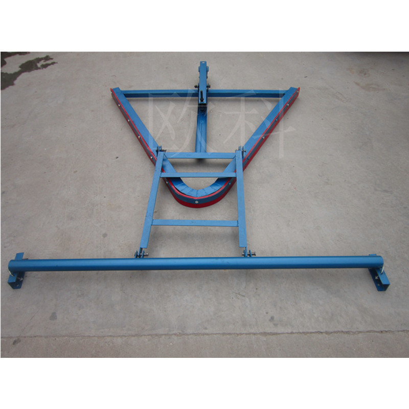 空段清掃器用于清除落到輸送帶下分支非工作面上的雜物以保護改向滾筒和輸送帶。需要裝空段清掃器的地方是尾部改向滾筒前和垂直拉緊裝置個90°改向滾筒前兩處。安裝時,需使清掃器刮板的犁尖對著輸送帶運動方向,以便將雜物刮到輸送機兩側的地面上