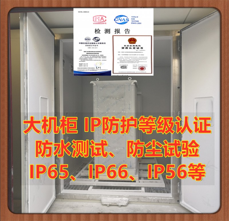 北京地區可以對高度超過兩米的大型機柜進行IP防護等級認證認證。