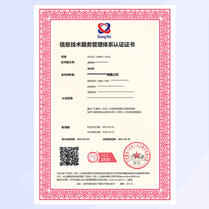 是對組織信息技術服務管理體系(符合ISO20000-1要求的一種。這是一種通過的第三方審核之后提供的保證:受的組織實施了信息安全管理體系,并且符合ISO20000-1標準的要求。