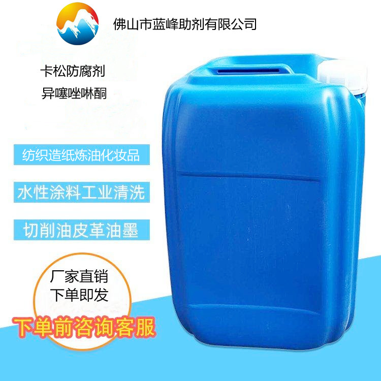 卡松防腐劑,系國際上公認的安全、高效、廣譜性防腐劑,不含任何重金屬,能有效的抑制和滅除菌類和各種微生物,防腐下過顯著在150ppm濃度下可完全抑制細菌生長,在125ppm濃度下,可完全抑制酵母菌和霉菌生長,在低添加量下能有效防止微生物侵擾。水中分散性好,不產生泡沫、不易燃、毒性低; 環境中易分解,不會對環境造成累積污染。