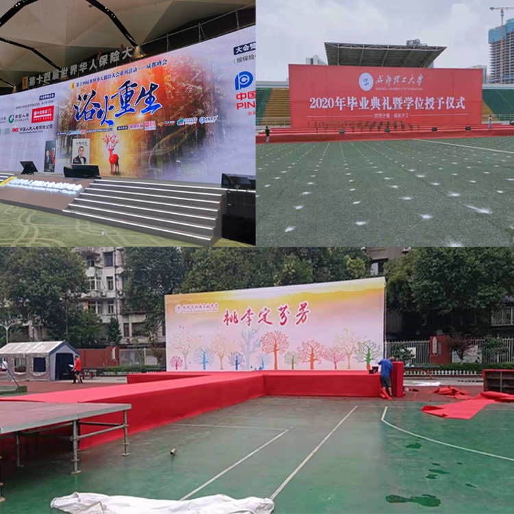 5、展覽器材銷售(折疊固定桁架、鋁合金燈光架、可折疊鋼架鋁合金舞臺、定制異形展架、促銷臺、X展架、促銷帳篷等)
