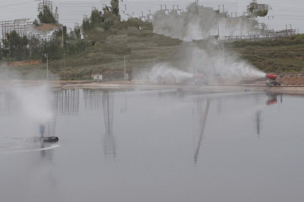 漂浮式蒸發(fā)器:設備安裝于浮船上,放置于蒸發(fā)塘水面上,進行霧化蒸發(fā)。