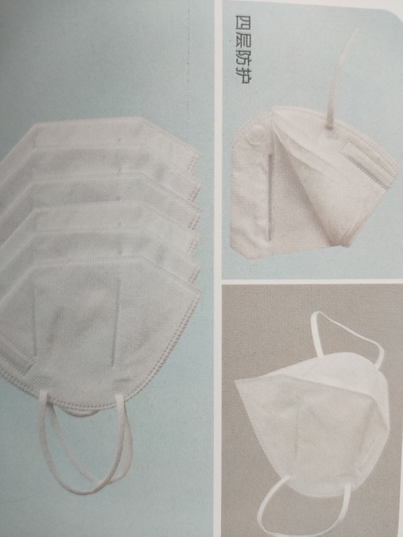 結構及組成:醫用防護口罩由口罩帶、鼻夾、口罩體組成;口罩體分為四層;中間兩層為熔噴布,外層和內層為無紡布。