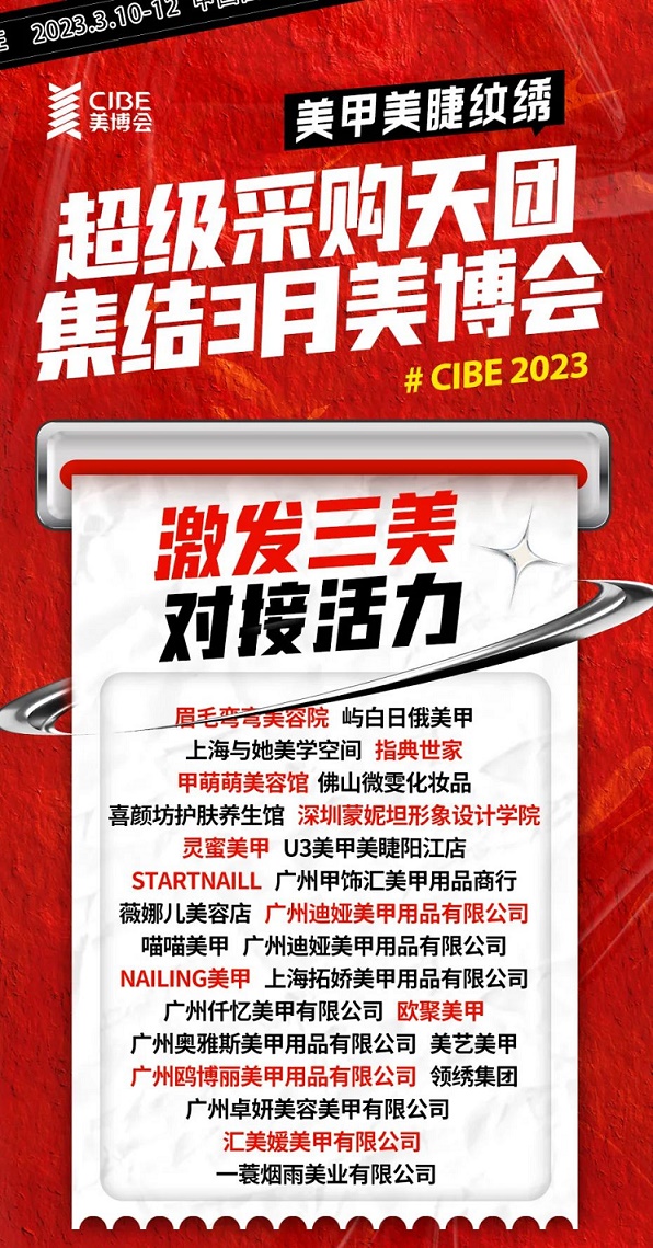 展商陣容**,專業(yè)買家組團(tuán)勢(shì)不可擋,來自全國(guó)20多個(gè)省市地區(qū)的代理商、經(jīng)銷商、美業(yè)連鎖機(jī)構(gòu)、美甲美睫門店、醫(yī)美機(jī)構(gòu)、美業(yè)培訓(xùn)學(xué)校、MCN機(jī)構(gòu)、社交電商、社群團(tuán)購(gòu)等萬名買家已火熱集結(jié)。