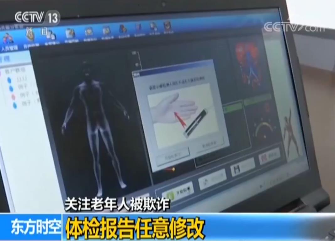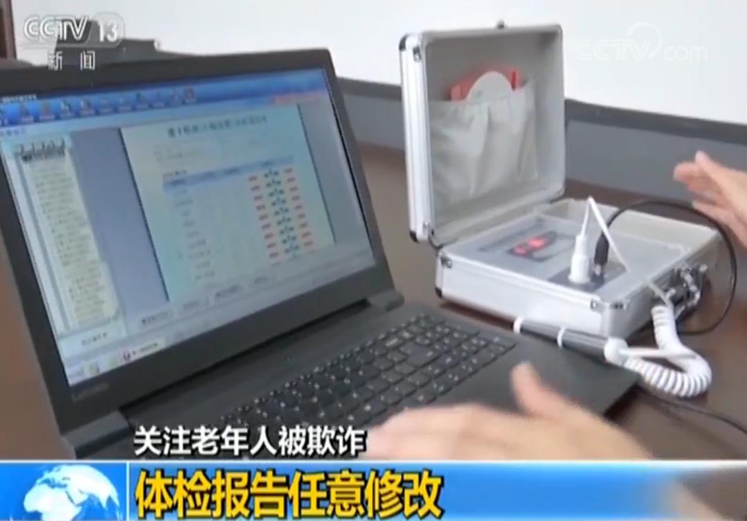 央視記者 孔令雯:這個(gè)就是用來給老人們進(jìn)行身體檢測(cè)的所謂生命光譜量子檢測(cè)儀,其實(shí)就包含這樣兩個(gè)設(shè)備,一個(gè)是方形的小檢測(cè)盒,上面寫著量子弱磁場(chǎng)共振分析儀,另外連接著一臺(tái)筆記本電腦。據(jù)說用這套設(shè)備就可以對(duì)人體,包括心腦血管、以及肝膽脾腎等所有臟器共計(jì)36類進(jìn)行全面檢測(cè)。那么這套儀器的檢測(cè)效果究竟如何,我現(xiàn)在就來體驗(yàn)一下。