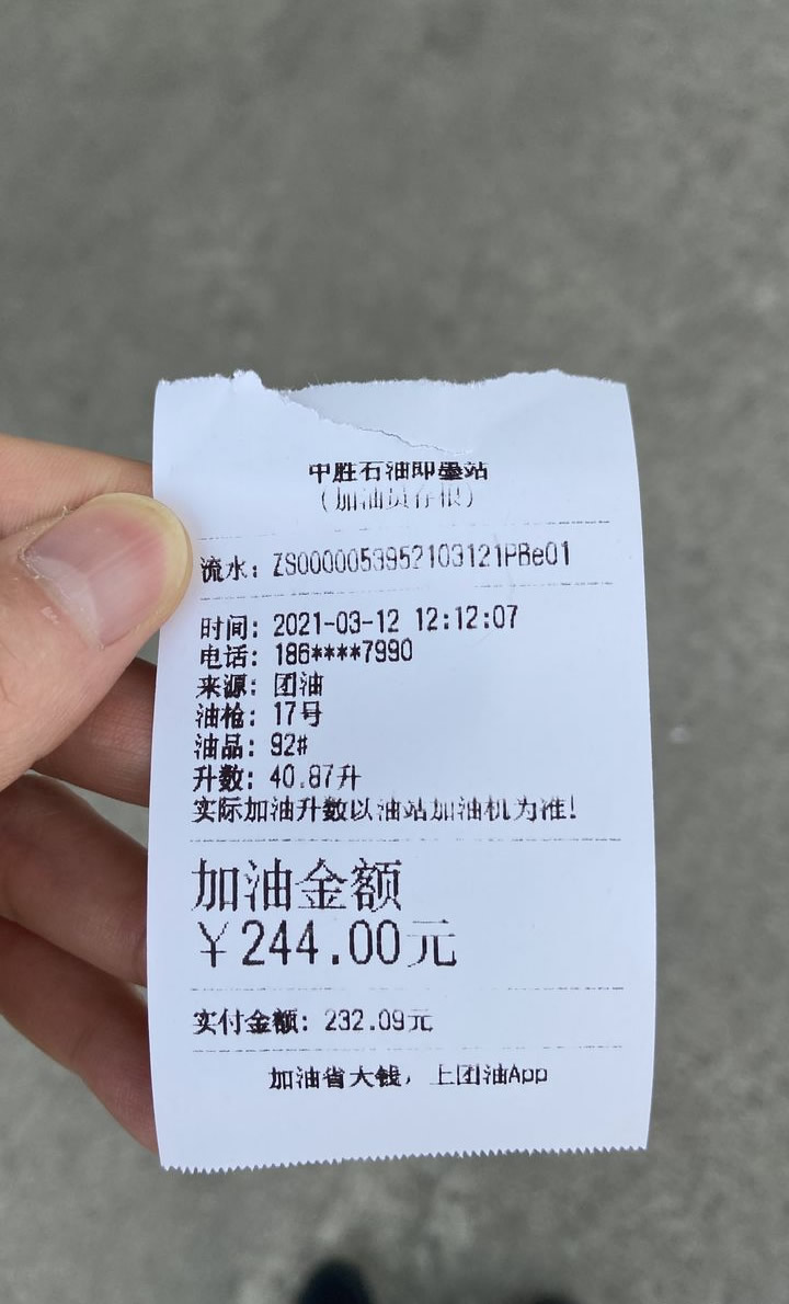 團油app里面顯示加油4.29元一升,加了40.87升以后實付款是232.09元 合5.67元一升!!團油app的優惠真是雷聲大,雨點小,你們這個團油app是虛假宣傳?還是騙子?請團油APP的工作人員出來給解釋一下!