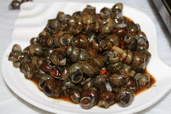 要想吃得干凈點,唯一的方法就是把田螺放在清水中(海水螺則放在鹽水中)靜養(yǎng)兩天,讓它排空腸道了。