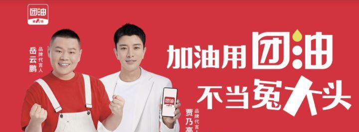 團油請來了明星賈乃亮和岳云鵬代言,宣稱''加油用團油,不當冤大頭'',解決司機''油貴焦慮''。
