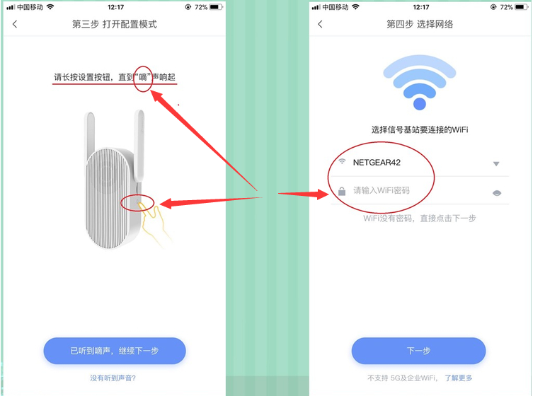 按照提示,長按“SET”按鈕,基站開始連接網絡!搜索到網絡后,手機端會彈出網絡名稱,并要求輸入wIfI密碼!(無線密碼里別設置特殊符號!以免連接失敗)