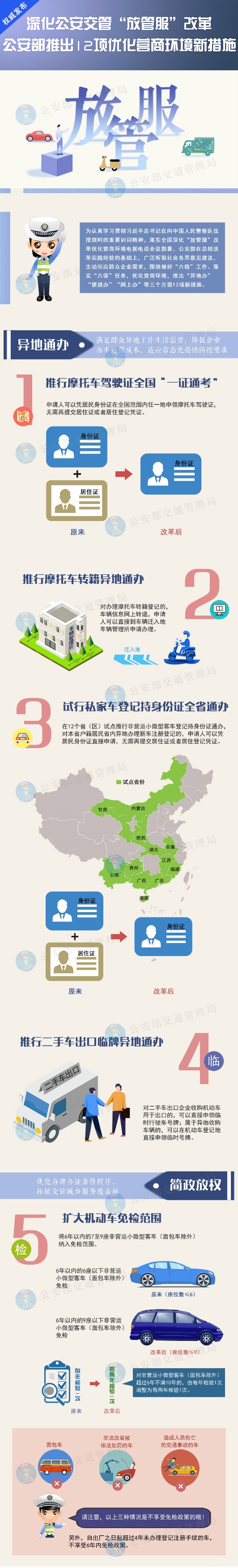 ——試行私家車(chē)登記持身份證全省通辦,在12個(gè)省(區(qū))試點(diǎn)推行非營(yíng)運(yùn)小微型客車(chē)登記持身份證通辦,對(duì)本省戶(hù)籍居民省內(nèi)異地辦理新車(chē)注冊(cè)登記的,申請(qǐng)人可以憑居民身份證直接申請(qǐng),無(wú)需再提交居住證或者居住登記憑證。