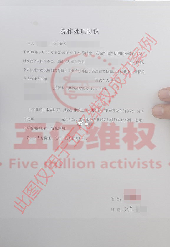 開戶后張易老師帶大家做單子,期間一直要求增加資金,說是這樣才能更好的由他帶著操作。開始賺了一點錢,后面他推薦的的單子一直虧損,我的資金便所剩無幾。之后又讓我們繼續入金,說是要把原來的虧損賺回來。這樣反反復復虧損越來越多,到11月底已經在國票華頓證券里面損失了30多萬。后來無意中看到五億維權曝光了和我經歷一樣的案例,講課老師也是一樣的,于是我才驚醒我被騙了。于是抱著試一試的心態聯系了五億維權,交流了幾小時后果斷簽訂了合同并提交了相關證.據,他們還保證維權不成功不收取任何費用,沒想到才過了兩周就收到了國票華頓證券退回的款項!