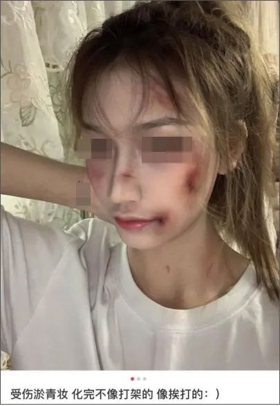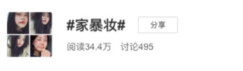 微博上還有一個(gè)關(guān)于“家暴妝”的話題,每天都有人在上面更新,相互攀比,看誰(shuí)的妝容更像被家暴。