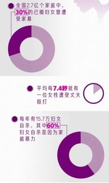 更重要的是,她們并不是一小波人,她們是一群人,數(shù)量多到你可能無(wú)法想象:據(jù)全國(guó)婦聯(lián)統(tǒng)計(jì),在全國(guó)2.7億個(gè)家庭中,有30%的已婚婦女曾遭受家暴,平均每7.4秒就有一位女性遭受丈夫毆打。