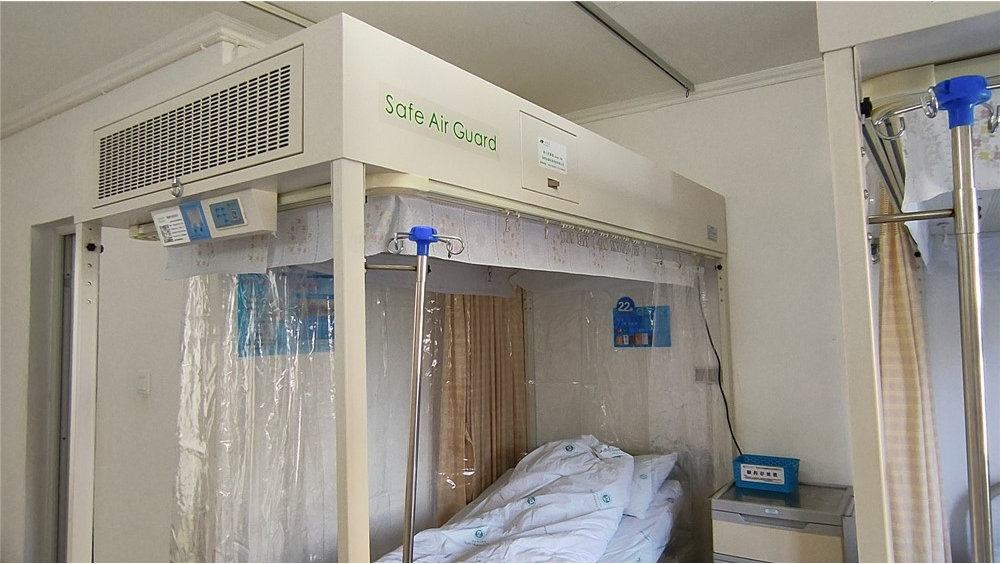 單人無菌室(層流床)由變量風(fēng)機(jī)系統(tǒng),高效空氣過濾系統(tǒng),消音降噪系統(tǒng),操作控制系統(tǒng)和透明無菌圍簾組成。通過在普通病房內(nèi)配置單人無菌室(層流床),形成局部潔凈無菌環(huán)境,與使用無菌凈化病房相當(dāng),能有效降低患者發(fā)生感染的幾率。