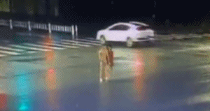 監控顯示,被撞的那名女子原本是正常在路口等待信號燈放行的,可是,等信號燈變綠,女子走上斑馬線后不久,她居然一扭身,走出了斑馬線,然后直接蹲在馬路上,看起來好像在哭泣。大約1分鐘后,事故就發生了。