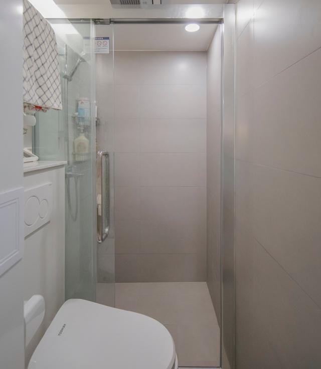 原衛(wèi)生間十分擁擠,根本無法滿足基本的布局,所以為了改善使用舒適性,內(nèi)部就取消了洗手臺(tái)功能。這樣不僅實(shí)現(xiàn)了獨(dú)立淋浴間設(shè)計(jì),日常使用也寬敞多了。