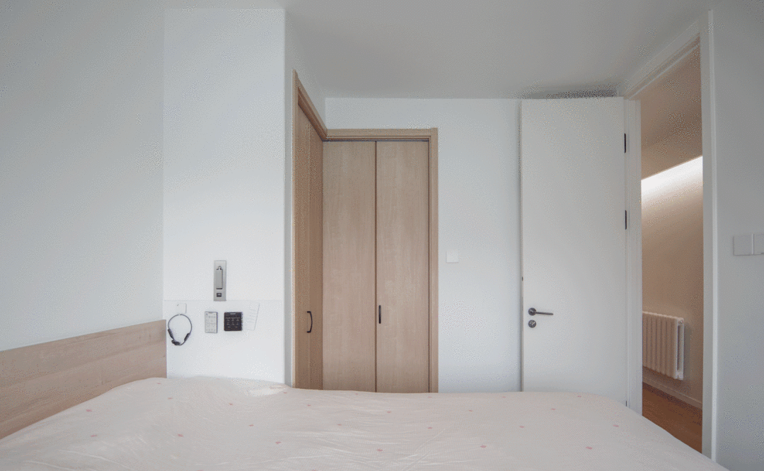 主臥選擇了一張1.5m寬的箱體床,兩人睡眠足夠,且可以用來收納。