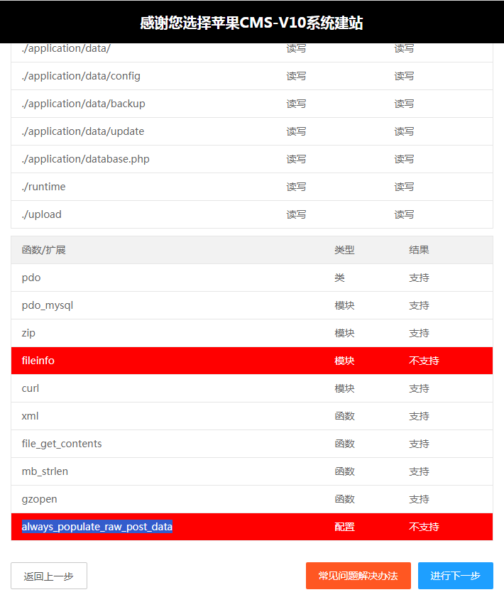 在安裝蘋果CMS v10版本或許有不少朋友都會出現(xiàn)always_populate_raw_post_data配置不支持,這是因?yàn)樘O果CMS官方說明always_populate_raw_post_data這個(gè)在PHP7.0后才默認(rèn)開啟的,我們由于配置了低版本的,所以默認(rèn)是關(guān)閉了,我們需要開啟它就好了。
