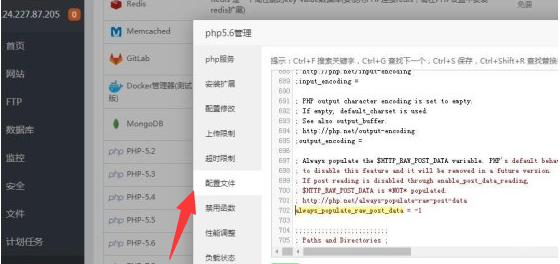 2、如果你不想升級7.2習(xí)慣使用php5.6版本的話你只有開啟。找到你安裝好的PHP,點(diǎn)擊設(shè)置,修改配置文件,查找 always_populate_raw_post_data,找到它之后去掉前面的分號保存即可。