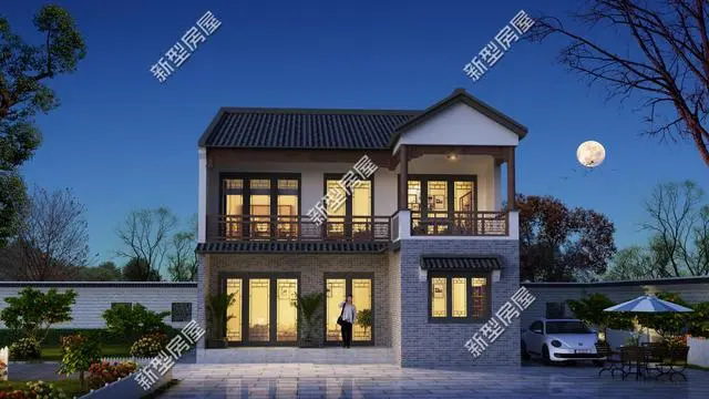 第2套:雙入戶門+休閑涼亭+多臥室,10×14米中式二層雅宅,主體預算35萬