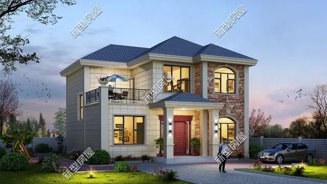 第1套:舒適陽臺+通透落地窗+大客廳,12×14米簡歐二層小宅,主體預算40萬