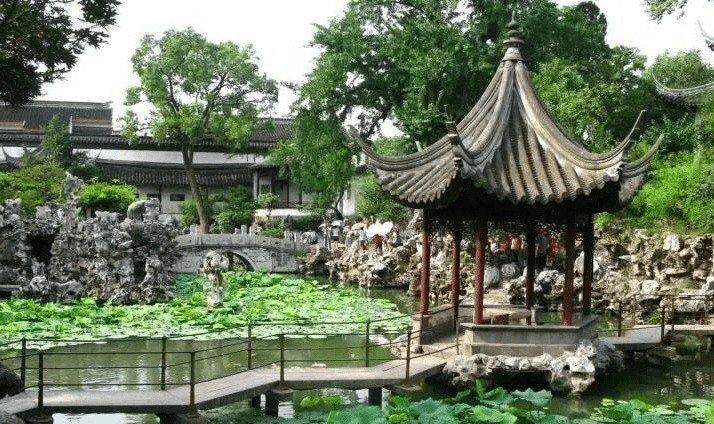 如蘇州拙政園中,眾多的景點均以水面為底景,使水面處于全園構圖核心的地位,所有景物景點都圍繞著水面布置,就使景觀結構更加緊密,風景體系也就呈現出來,景觀的整體性和統一性就大大加強了。