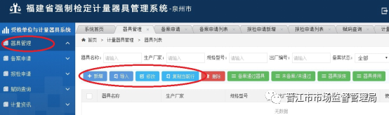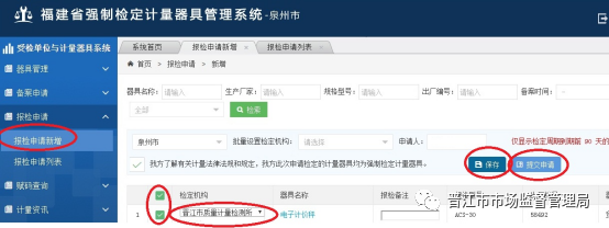 第二步,登錄“福建省強(qiáng)制檢定計(jì)量器具管理系統(tǒng)”網(wǎng)上報(bào)檢