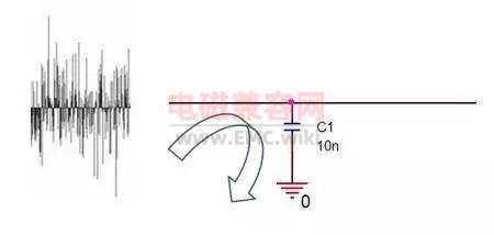 當(dāng)高頻時(shí),電容C由于阻抗Z已經(jīng)很小了,相當(dāng)于把高頻噪聲短路到GND上去了。