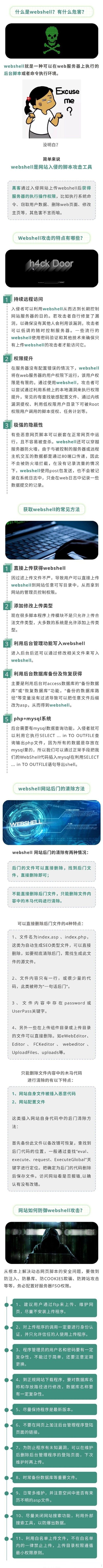 webshell是網站入侵的腳本攻擊工具,黑客通過入侵網站上傳webshell后獲得服務器的執行操作權限,比如執行系統命令、竊取用戶數據、刪除web頁面、修改主頁等。