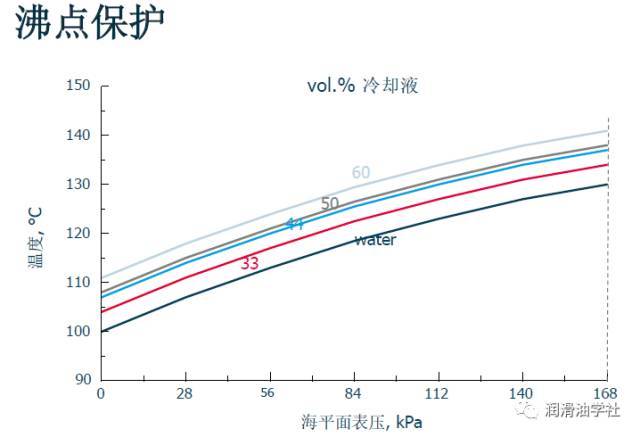 不同類型的防凍液的沸點都會隨著壓力的增大而增加,見下圖: