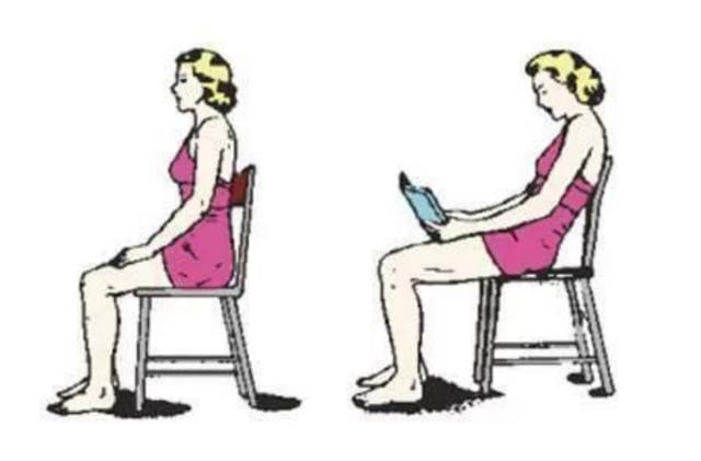 像軟骨頭似的斜坐在椅子上,會使壓力集中在脊椎尾端,形成血液循環不良,血氧供應缺乏。最好的坐姿是坐在椅子的2/3處,背脊挺直。