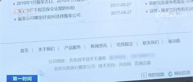 今年7月,吳女士準備搬家。她通過百度搜索了詞條 “北京搬家公司哪家服務最好”,排名第一的是“北京四方兄弟搬家公司”。公司網站上顯示,這是一家非常有規模的正規搬家公司。于是,她和客服取得聯系。