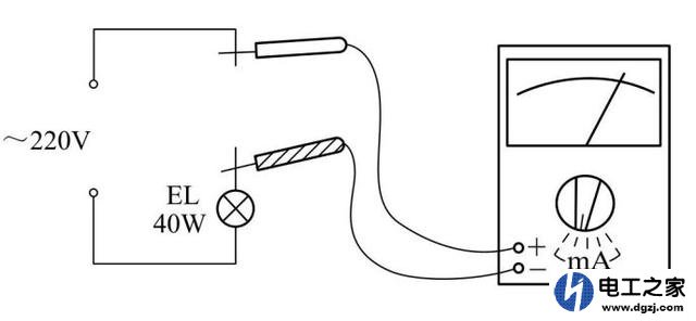 必須使用具有交流電流檔的指針式萬用表才可以直接測量交流電流,測量直流電流相似,將萬用表串入被測電路即可。