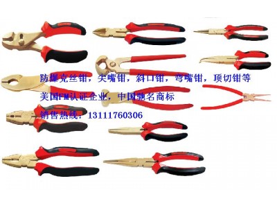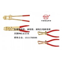 郵箱:281935698@ qq.com 防爆克絲鉗:規格6”-10”,產品采用鈹青銅、鋁青銅合金材料,通過摩擦壓力機模鍛而成。經過試驗受力部位,刃口剪切∮4mm低碳鋼絲1000次不損壞,不變形。防爆性能達到IIC級。適用濃度21%的氫氣環境中作業不產生火花、不引爆氣體。