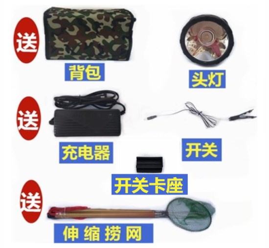 隨機配送:伸縮撈網一套  精致背包一個  防水開關一個  LED頭燈一個   開關卡座一個  說明書及保修卡