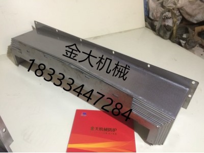 鋼板防護罩具有密封好,能防鐵屑、防冷卻液,防工具的偶然事故。堅固耐用,運行平穩,噪音小,外形美觀。鋼板防護罩適宜高速運動機床導軌防護既平穩又無振動噪音。鋼板防護罩裝置不但保護護板的使用壽命,更重要的是保證了機床精密度。鋼板防護罩每一節護板同時平行拉開,并同時平行縮回,運行自如。鋼板防護罩不會使護板脫節,有撞擊聲,既美觀又提高了護板的使用壽命。在原密封膠條的基礎上又加蓋了一層不銹鋼蓋板,防止鐵屑高溫好膠條擦入軌面拉傷導軌。 鋼板防護罩裝置優點:護罩每片可連發同動,完全不同于一般護罩一片接一片拉動式,因此噪音極低。采用裝置之護罩可以增長使用壽命。鋼板防護罩裝置可使護罩移動速度升到120m/min及承受更高的G值(2G)。鋼板防護罩裝置使護罩同動且平行(避免了一般剪力式防護罩仍有蛇行的缺點)。在高速時可以更平穩,接頭的作用首先是將網套與波紋管聯接為一體,同時,接頭又是金屬軟管與金屬軟管或其它管件、設備相聯接的部件沒有振動產生。