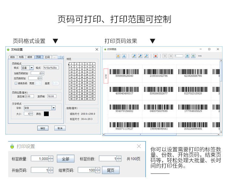 可自由調整打印順序、頁碼樣式;可設置打印起止頁碼;可以配合進紙傾斜情況,調整頁面輸出傾斜度,很大限度提高打印精度,減少企業印刷損失。