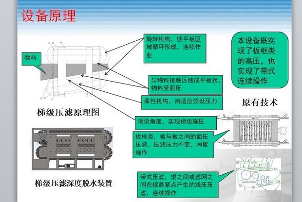 國內(nèi)首創(chuàng)的帶式壓濾污泥深度脫水新技術(shù),本技術(shù)特別適用于污泥脫水提標(biāo)改造工程,充分利用原有一次污泥脫水系統(tǒng),將80%左右含水率的一次脫水污泥深度脫水到含水率60%左右。