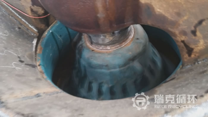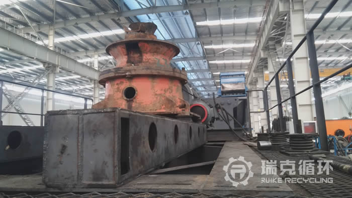 該臺GP100液壓圓錐破碎機投入生產(chǎn)到我公司回收使用的時間并不長,設(shè)備是山東某砂石生產(chǎn)企業(yè)購買的,用于制砂生產(chǎn)線中,該砂石生產(chǎn)企業(yè)在生產(chǎn)了一段時間以后由于當(dāng)?shù)丨h(huán)境保護的力度不斷增大,將該企業(yè)關(guān)停,隨后被閑置堆放。該臺設(shè)備被我公司回收以后,外觀有明顯的銹跡但內(nèi)部結(jié)構(gòu)保存的還比較良好,公司技術(shù)人員對該臺設(shè)備進行的拆機檢查維護,發(fā)現(xiàn)頂部軸承,動錐部位,主軸這些關(guān)鍵部位都完好無損,公司對其它有磨損的部位進行了修復(fù)重新更換了易損件,并且進行了系統(tǒng)的維護保養(yǎng)。