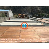 混凝土浮碼頭,整體結構采用鋼筋混凝土一次性澆注工藝,并預埋好水電管道和檢修槽。浮碼頭內槽充填高密度聚苯乙烯泡沫,分段設結構隔艙。因重量極重, 浮橋穩定性超群,具有大氣美觀、耐腐蝕抗凍、搞風浪穩定性好、堅固耐用、維護成本低,能夠適應各種惡劣的自然環境。浮橋組件之間通過一個“減震系統連接固定。