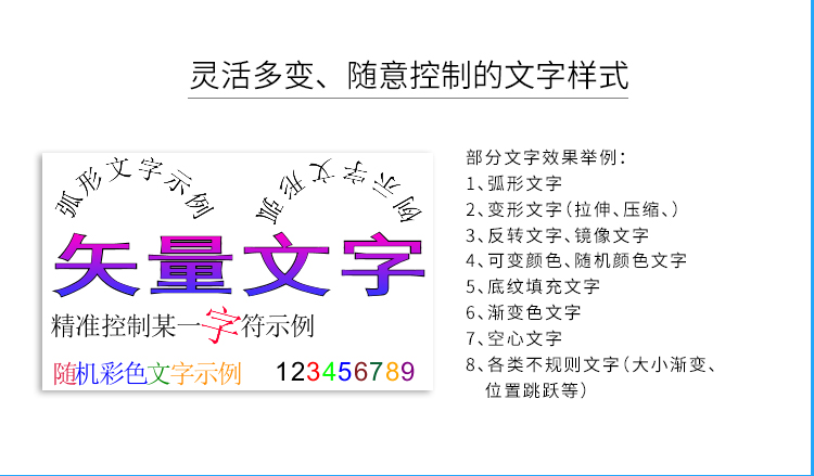 1、直觀便捷的圖形繪制功能。可以繪制矩形、(橢)圓形、三角形、多邊形、線段、曲線、文字等多達15種圖形對象;圖形可隨意拉伸、壓縮、旋轉等;封閉式圖形支持漸變色、背景圖案等填充方式;圖形尺寸、位置、旋轉角度可精準設置;數據類圖形支持數據的批量生成或導入;圖形編輯支持對齊、等間距等常規圖像處理方法。