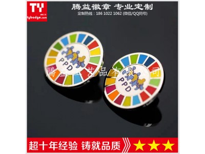 徽章.胸章.襟章.胸針.此產品材料為青銅.鋅合金.鐵.鋁片等工藝有蝕刻.沖壓.合金壓鑄.上色效果有烤漆.軟琺瑯,可電鍍金.鍍鎳.鍍黑鎳.鍍霧金.鍍雅鎳等配件一般為安全別針或蝴蝶帽.也有客戶選擇高級卡帽和橡膠帽,普通包裝,價格合理,歡迎有需要的客戶來電咨詢,也歡迎登陸我們的網站查看,謝謝。