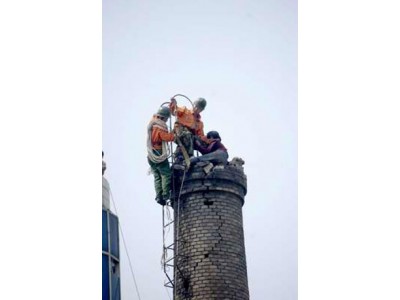 煙囪維修-------煙囪維修是指煙囪筒身裂縫打抱箍加固,煙囪拆除加高,煙囪更換安裝航標燈、避雷針、平臺、爬梯等工程。煙囪維修因為煙囪高度高,在加上不停產作業,危險系數高,這就需要找專業的有施工經驗的公司來完成。江蘇三里港高空建筑防腐有限公司具有:二級建筑資質,一級防腐防水保溫資質,所有施工人員均持有特殊工種操作證并參加人生意外傷害保險。
