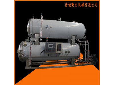 雙層高溫殺菌鍋與單鍋高溫殺菌鍋只要區別在于節能,節省人工,提高工作效率。均**水方式,鍋內熱點分布均勻,無死角。殺菌鍋水浴式殺菌對食品進行殺菌是通過對熱水加熱,加熱完成后通過熱水不斷循環進行殺菌,殺菌過程中通過不斷升溫恒溫保持121度殺菌,不同食品殺菌需要不同的殺菌工藝,比如扒雞,烤鴨等肉食品殺菌時間要長,才能殺透,但是真空包裝的豆制品等休閑食品殺菌時間則不需要很長。雙層高溫水浴式殺菌鍋,上罐起到一個儲水的作用**鍋殺菌時間比較長**鍋殺菌完畢后熱水儲存到上罐,第二鍋開始一鍋殺菌時間一般為1個小時連裝貨取貨包括在內。整個滅菌工藝流程全部由電腦PLC控制,一次性完成,無需人工操作。每一臺殺菌鍋都有F值測量儀,測量儀具有測量F值的功能,測試儀每隔三秒進行一次F值計算,所有的殺菌數據,殺菌時間,殺菌條件,F值,溫度曲線,都能通過數據處理后進行保存打印,能很大程度的方便客戶進行生產管理和總結產品工藝。雙層水浴式高溫高壓全不銹鋼殺菌鍋節約能源,殺菌鍋內的殺菌水可循環使用,